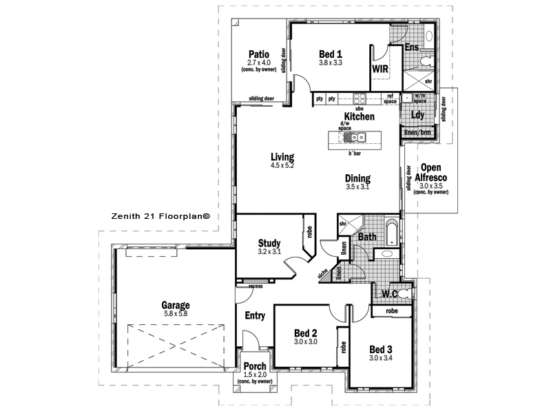 The Zenith 21 design allows for plenty of privacy for the family and great use of side yard becuase of it's L shape style design.