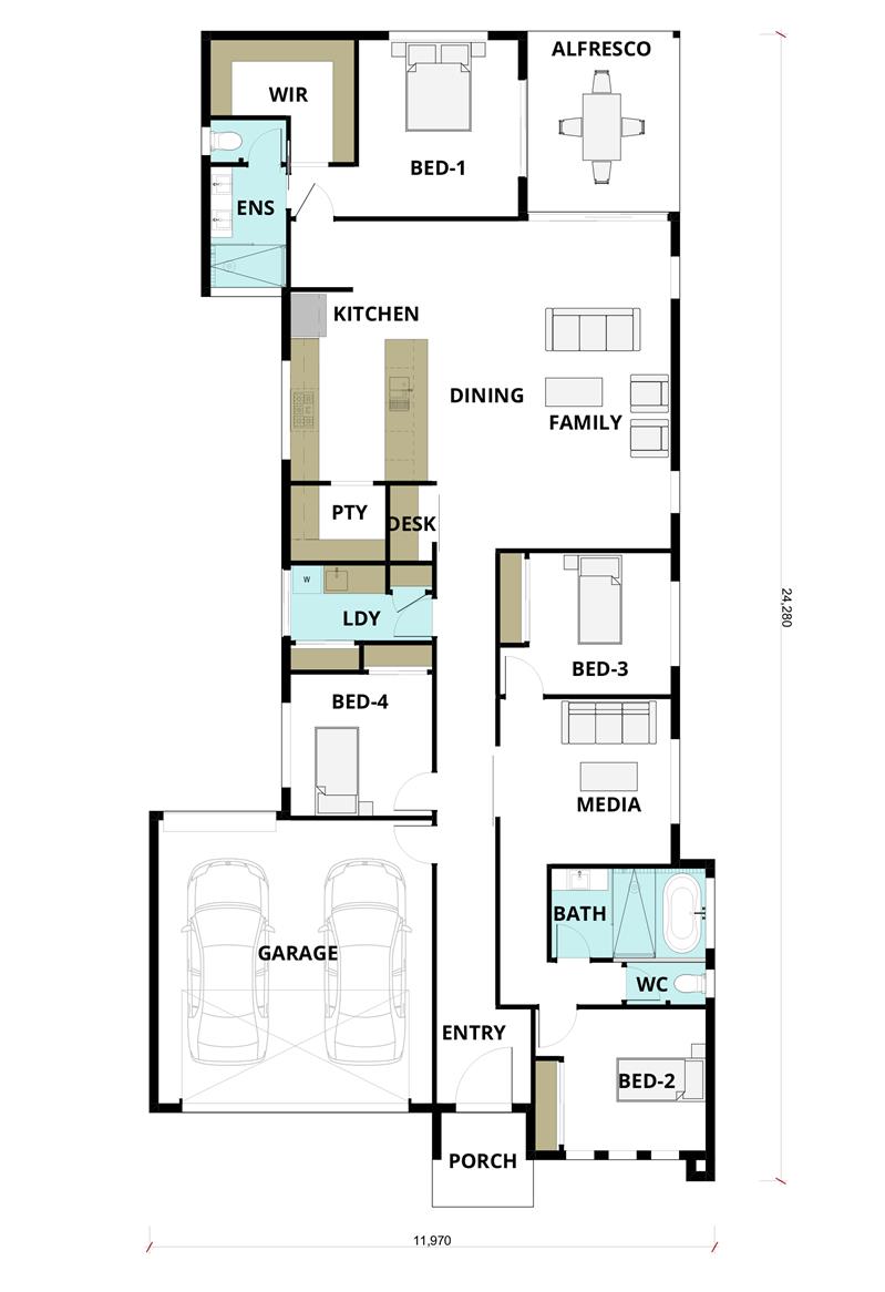 This home design is fantastic for families who enjoy their own spaces whilst also celebrating togetherness within the centrally located open plan living area.